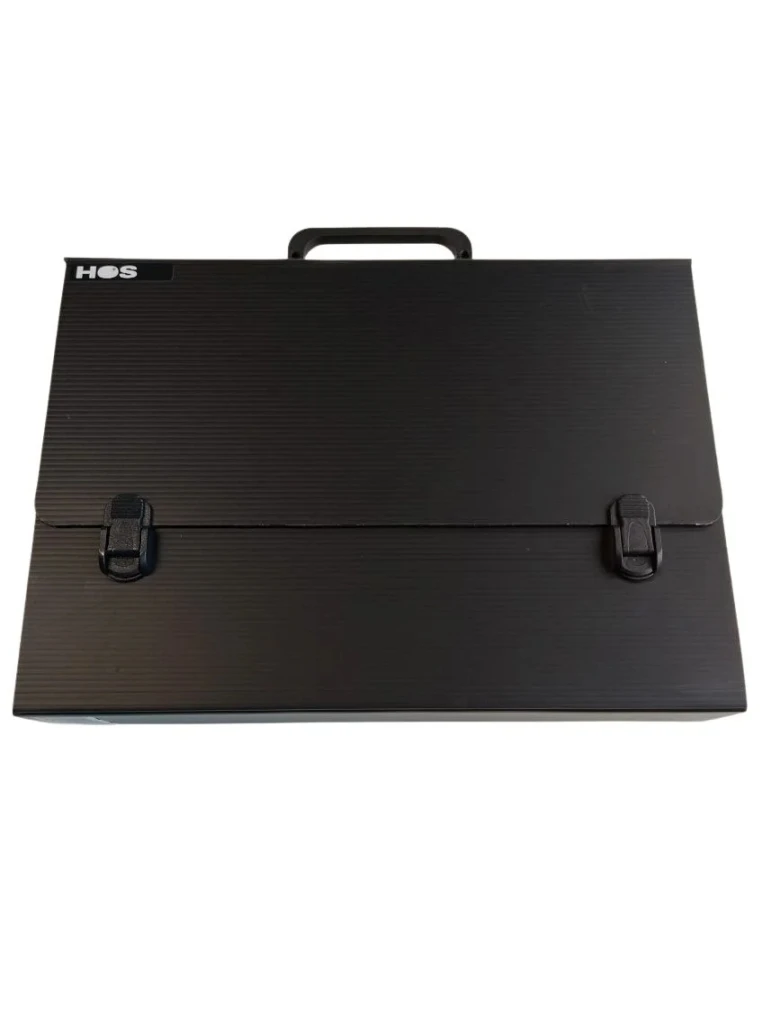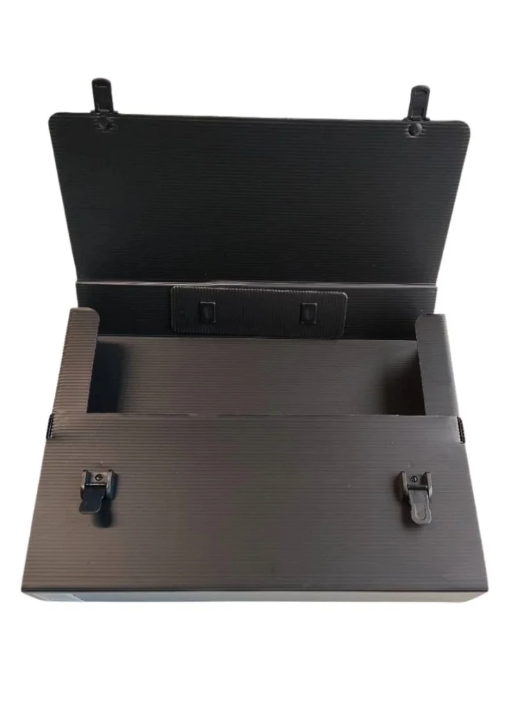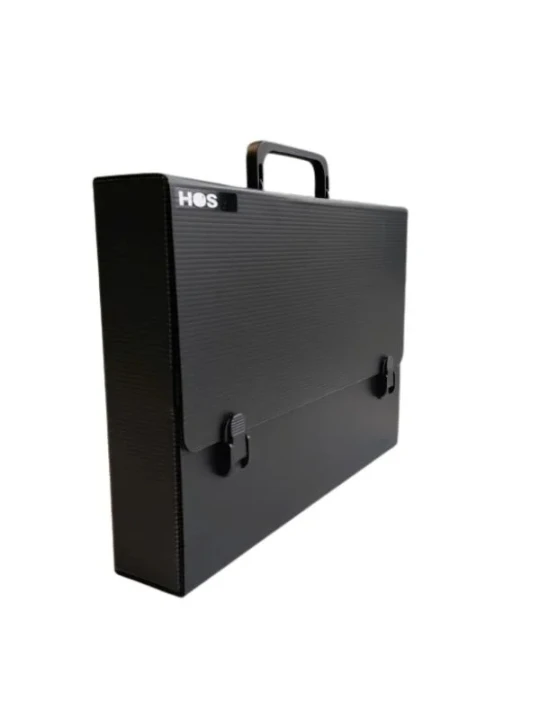 Praktyczna i wytrzymała teczka do przechowywania oraz transportu dokumentów, projektów i prac plastycznych. Wykonana z wysokiej jakości czarnego polipropylenu, który zapewnia odporność na wilgoć, zagniecenia i codzienne użytkowanie. Sztywna konstrukcja skutecznie chroni zawartość przed uszkodzeniem.