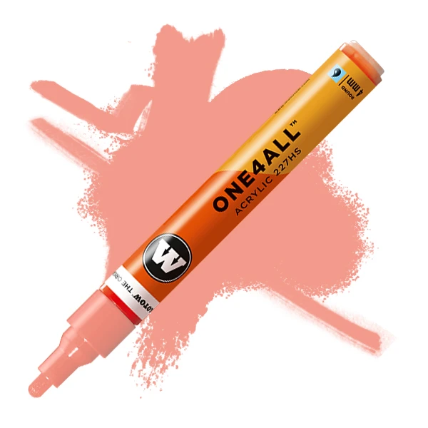 Marker z końcówką o szerokości 4mm pozwala na precyzyjne wykonywanie swojej pracy. One4All nowa referencyjna klasa wśród markerów. Niesamowity zasięg( do malowania po skórze, plastiku, metalu etc.), jasne kolory (100% odporność na UV), zawór Flowmaster dla aktywnej kontroli przepływu farby i opatentowana technologia kapilarna. Przełomowe akrylowe, hybrydowe farby, które mogą być rozcieńczane z wodą lub acetonem. Wszystkie te cechy sprawiają, że seria one4all to gwiazda w obszarze sztuki i projektowania. Do ponownego napełniania.