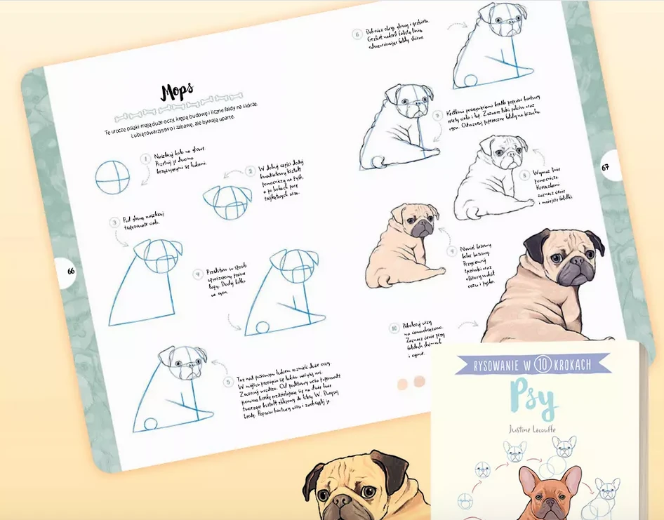 Książka „Nauka rysowania – psy” to idealny poradnik dla miłośników psów, którzy chcą stworzyć portret swojego pupila lub oddać charakter i urok czworonożnego przyjaciela. Dzięki prostym instrukcjom w 10 krokach można przekształcić podstawowe kształty w realistyczne wizerunki psów różnych ras i w rozmaitych pozach.