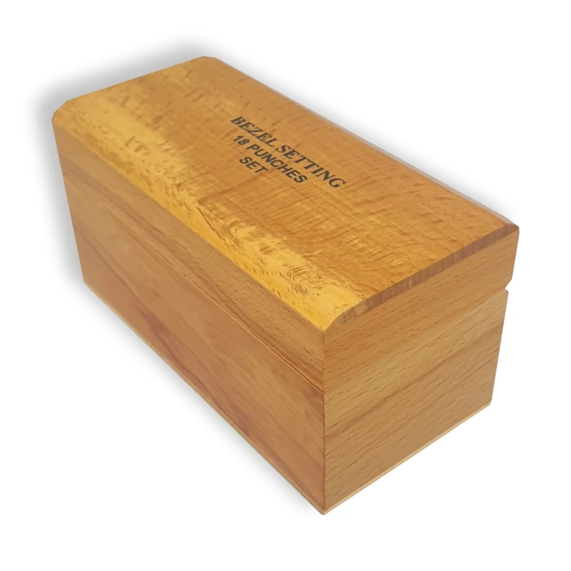 Jest to zestaw 16 zakuwaczy do kamieni, zapakowanych w eleganckie, drewniane pudełko. Zakuwacze to narzędzia jubilerskie służące do trwałego mocowania kamieni w oprawach biżuterii, takich jak pierścionki, wisiorki czy kolczyki.