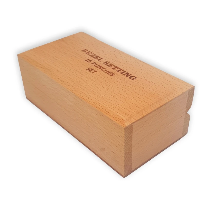Jest to zestaw 18 zakuwaczy do kamieni, zapakowanych w eleganckie, drewniane pudełko. Zakuwacze to narzędzia jubilerskie służące do trwałego mocowania kamieni w oprawach biżuterii, takich jak pierścionki, wisiorki czy kolczyki.