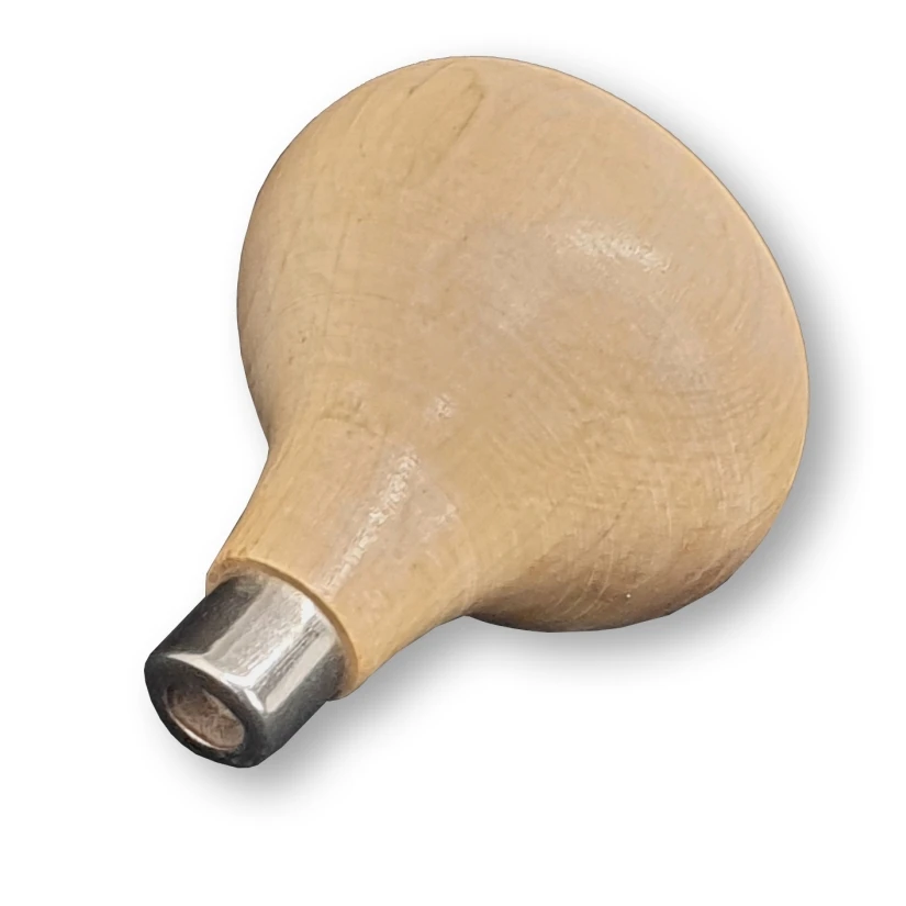 Uchwyt ten ma charakterystyczny, gruszkowaty lub kulisty kształt, który idealnie pasuje do wnętrza dłoni. Dzięki temu można mocno i stabilnie chwycić narzędzie, co jest kluczowe przy precyzyjnym rytowaniu.