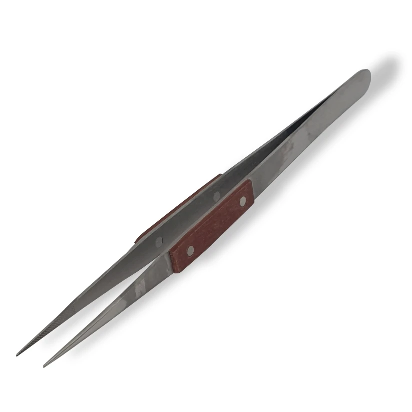 Kształt: Pęseta ma proste, zwężające się końcówki, które pozwalają na precyzyjne manipulowanie małymi przedmiotami w trudno dostępnych miejscach.
