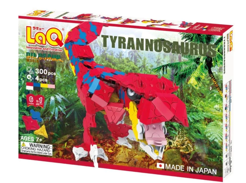 Zestaw LaQ Dinosaur World – Tyrannosaurus to propozycja dla miłośników dinozaurów i konstrukcji 3D, którzy chcą przenieść się w świat prehistorii. W pudełku znajduje się 300 elementów oraz 4 części specjalne Hamacron, dzięki którym powstają nie tylko solidne, ale także ruchome modele. Seria Dinosaur World została stworzona z myślą o łączeniu zabawy z nauką, inspirując do odkrywania tajemnic paleontologii.