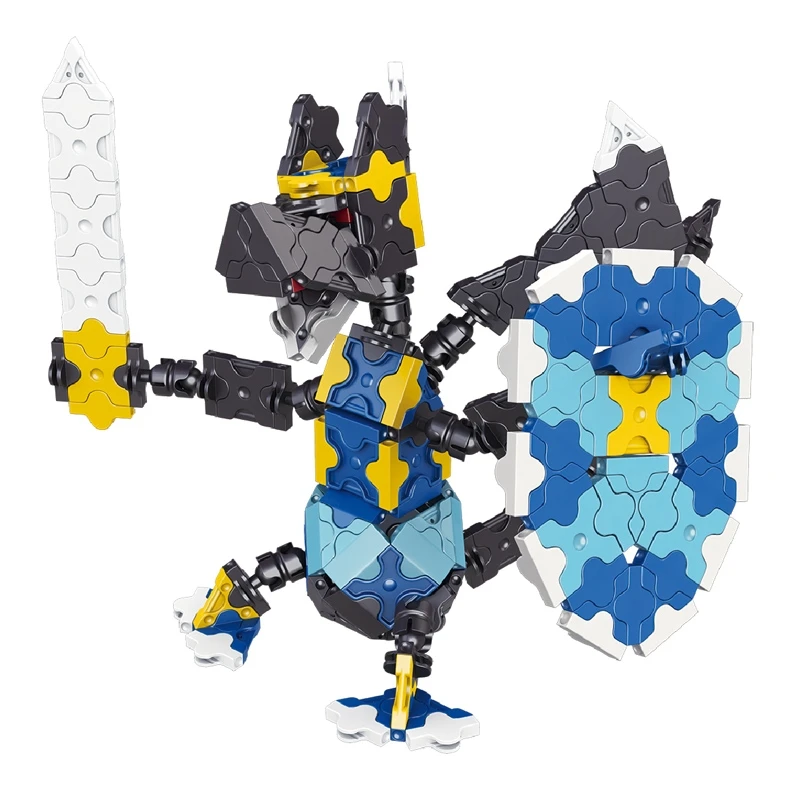 Zestaw zawiera bogaty asortyment elementów: 400 standardowych klocków LaQ oraz 33 specjalne części, w tym przeguby kulowe. Dołączona książeczka z instrukcjami krok po kroku pokazuje, jak zbudować dwa główne modele: humanoidalnego robota oraz robota w trybie "lew-robot". Dzięki zastosowaniu przegubów, gotowe modele są w pełni ruchome.