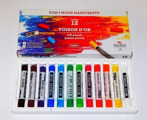 Pastele suche Toison D'Or 12 sztuk marki KOH-I-NOOR to profesjonalny zestaw wysokiej jakości kredek pastelowych, idealny dla artystów, hobbystów oraz osób uczących się technik plastycznych. Dzięki intensywnym barwom i miękkiej strukturze, pastele gwarantują płynne cieniowanie, łatwe mieszanie kolorów oraz możliwość uzyskania subtelnych przejść tonalnych.