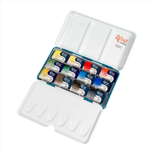 Profesjonalny zestaw farb akwarelowych w kostkach o pojemności 2,5 ml w wygodnej metalowej kasetce to idealny wybór dla artystów, plastyków i pasjonatów malarstwa. Farby zostały wykonane z naturalnych i syntetycznych pigmentów na bazie czystej gumy arabskiej, co zapewnia intensywne, czyste i transparentne kolory.