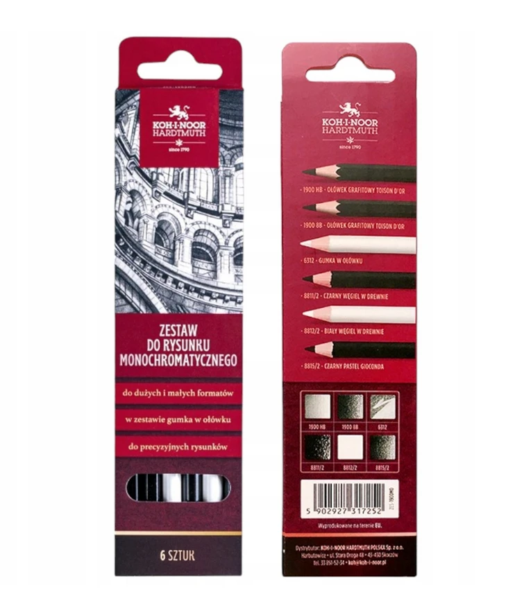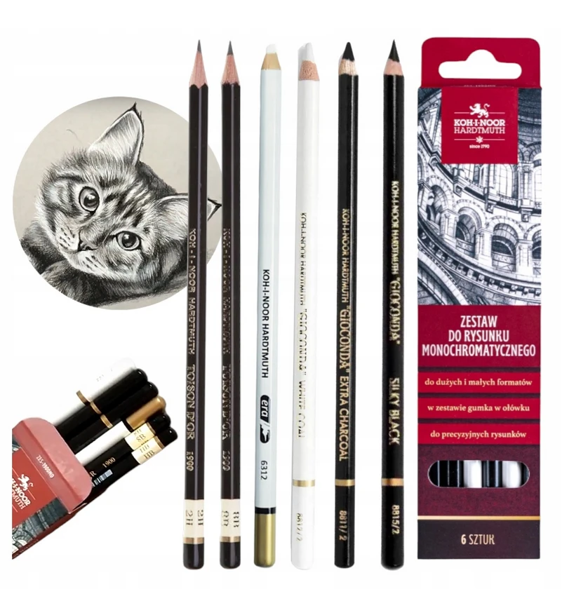 Zestaw do rysunku czarno-białego to kompletny zestaw narzędzi artystycznych do tworzenia precyzyjnych prac w monochromatycznej kolorystyce. Każde narzędzie jest dostępne w drewnianej oprawce, co zapewnia wygodną i dokładną pracę.