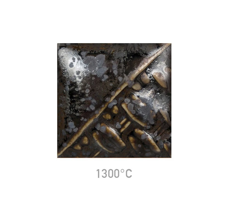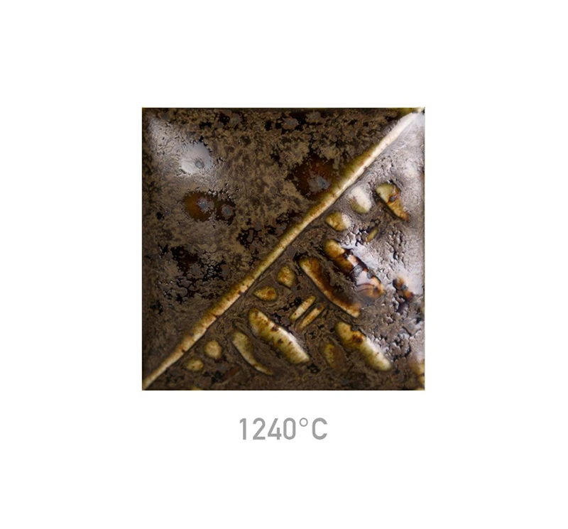 Mayco SW-220 Black Timber to satynowe, nieprzezroczyste, cieniowane szkliwo w odcieniach brązu, które efektownie rozkłada się na powierzchniach z teksturą. Zawiera błyszczące, brązowe kryształy. Kolor bazowy jest stabilny, kryształy mogą płynąć. W miarę wzrostu temperatury wypału redukcyjnego kolor staje się ciemniejszy i bardziej metaliczny, a kryształy intensywniej się rozpływają. Szkliwa z serii Mayco Stoneware zostały zaprojektowane do wypału w zakresie 1200-1300°C, zarówno w atmosferze utleniającej, jak i redukcyjnej. Przed użyciem dobrze wymieszaj, a następnie aplikuj pędzlem na biskwit w kilku warstwach. Końcowy wygląd szkliwa zależy od rodzaju gliny, liczby warstw oraz krzywej wypału.