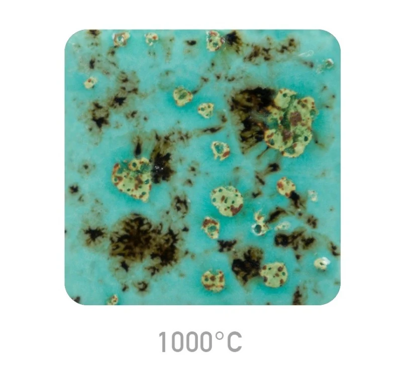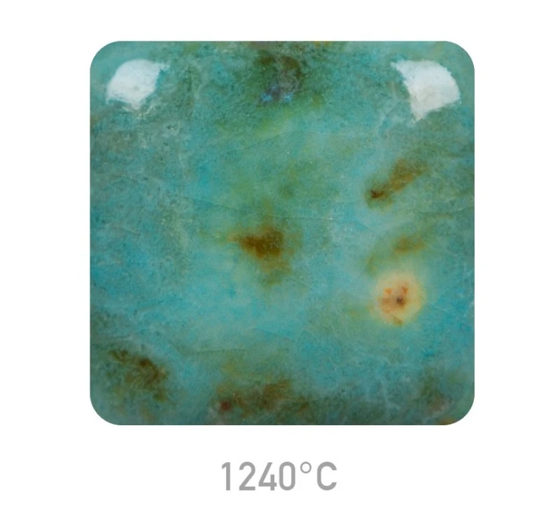 Wpływ Wyższej Temperatury: Szkliwo można wypalać do wyższych temperatur (np. 1222°C), ale ze zwiększoną ostrożnością. W wyższych temperaturach kryształy silniej się roztapiają, co zwiększa płynność szkliwa bazowego.