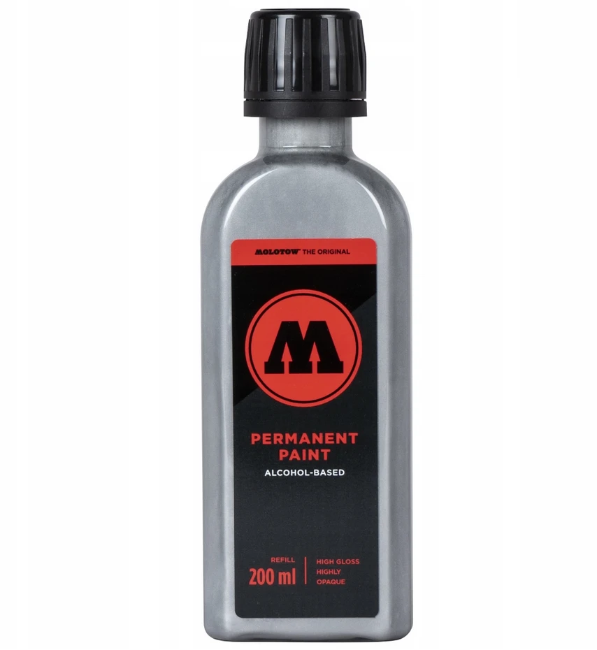 Molotow Permanent Paint Chrome o uniwersalny tusz na bazie alkoholu, który zapewnia wysoką kryjącość i lekki połysk. Jest permanentny i szybkoschnący, co pozwala na zastosowanie zarówno wewnątrz, jak i na zewnątrz pomieszczeń. Tusz sprawdza się na wielu powierzchniach, takich jak metal, plastik, szkło, karton, papier i wiele innych.