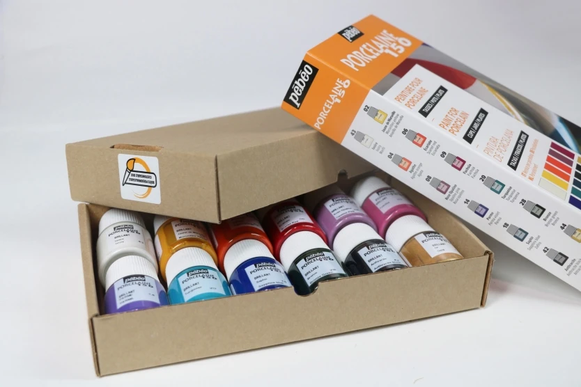 Zestaw farb Porcelain 150 Brillant marki Pébéo to wodne farby, które po wypaleniu uzyskują piękny emaliowany wygląd. Produkt doskonale nadaje się do dekorowania ceramiki, porcelany, szkła oraz metalu. Farby są gotowe do użycia zaraz po wymieszaniu i można je dowolnie łączyć ze sobą lub z farbami Vitrea 160. Dodatkowo można stosować dodatki odporne na wysokie temperatury, aby uzyskać różnorodne efekty dekoracyjne.