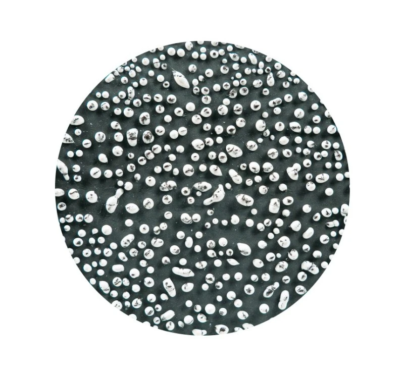 Efekt: Błyszczące, białe szkliwo z czarnymi plamkami. Podczas wypału cofa się z powierzchni, tworząc nieregularne, wypukłe wyspy z efektem pełzania.
