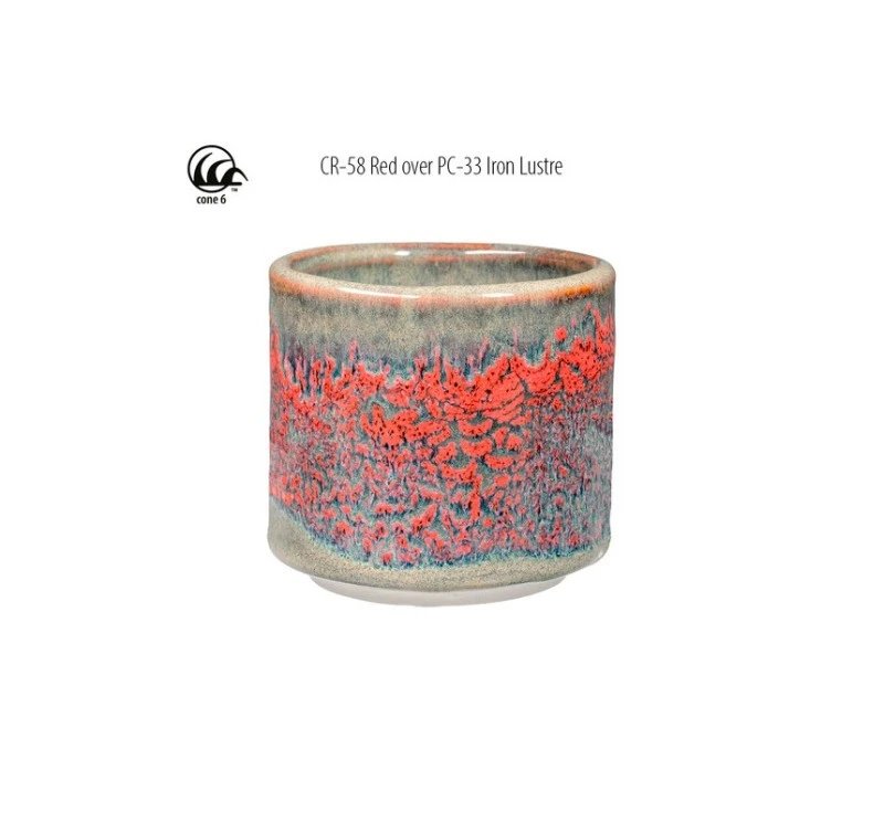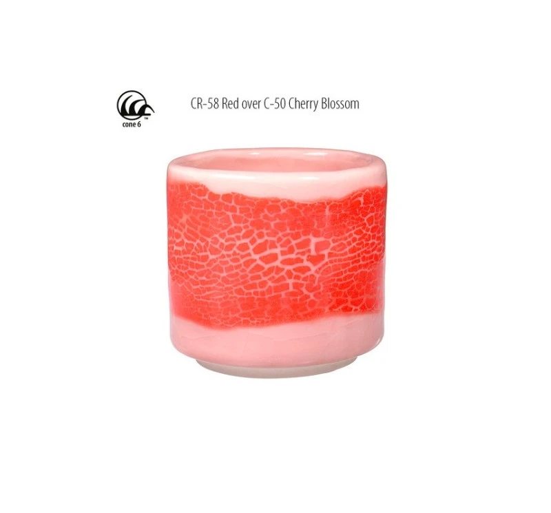 AMACO CR-58 Red to wyjątkowe szkliwo ceramiczne z innowacyjnej serii Crawls (pełzanie), zaprojektowane do celowego wywoływania efektu „crawling” (pełzania lub kurczenia się szkliwa). Efekt ten jest wykorzystywany do tworzenia unikalnych, fakturowanych powierzchni. Szkliwo jest w kolorze błyszczącej czerwieni.