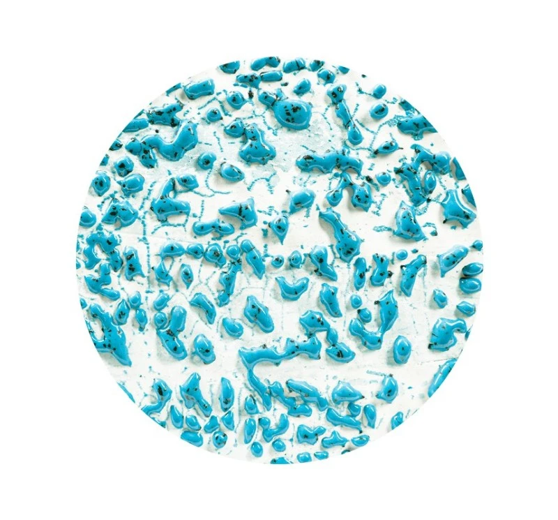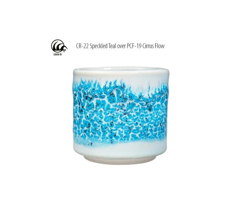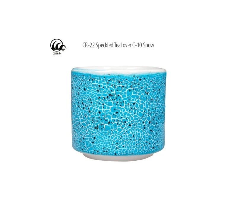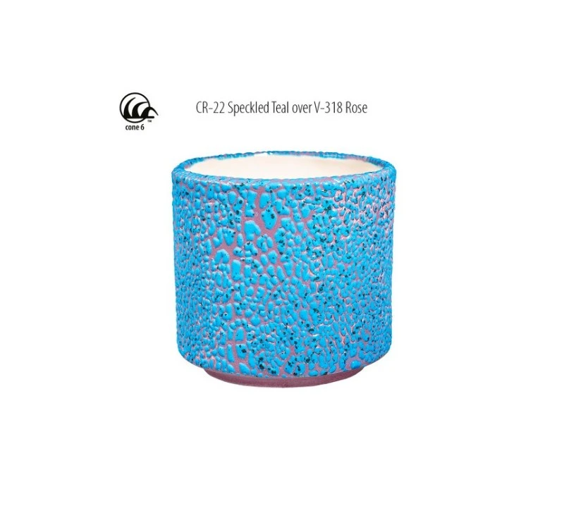 AMACO CR-22 Speckled Teal to wyjątkowe szkliwo ceramiczne z innowacyjnej serii Crawls, zaprojektowanej do celowego wywoływania efektu „crawling” (pełzania lub kurczenia się szkliwa). Efekt ten jest wykorzystywany do tworzenia unikalnych, fakturowanych powierzchni. Szkliwo jest w kolorze turkusowym (teal) z czarnymi drobinkami.