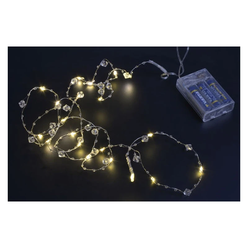 Lampki LED „20 szt. kryształki” to delikatny zestaw dekoracyjny na cienkim, giętkim druciku. Emitują ciepłe światło, zasilane są bateriami, co pozwala na dowolne aranżacje w domu. Idealnie nadają się do dekoracji wnętrz, wazonów, girland czy świątecznych stroików, tworząc przytulny i efektowny klimat