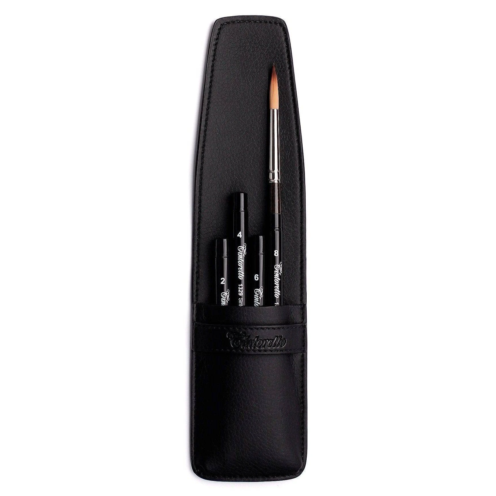 Tintoretto Zestaw 4 pędzli nylonowych w skórzanym pokrowcu