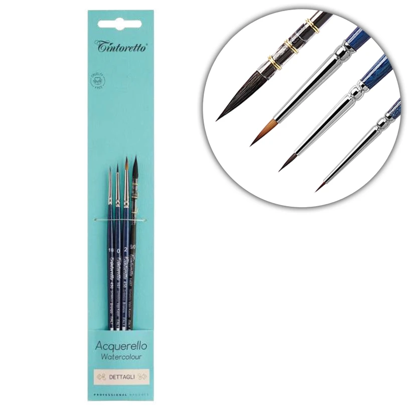 Tintoretto Zestaw Pędzli do Detali blister komplet 4 pędzli