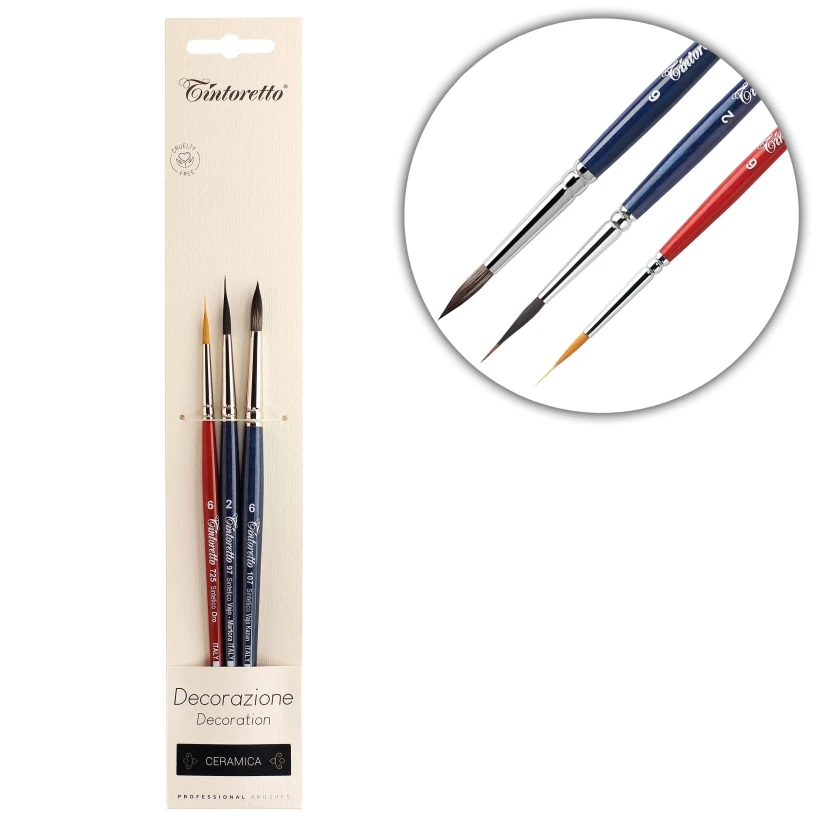 Tintoretto Pędzle do Ceramiki na Blistrze komplet 3 pędzli