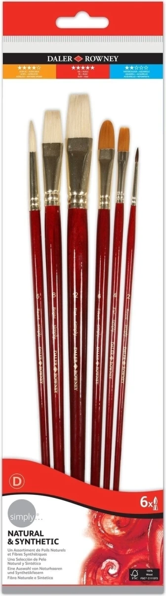 Daler & Rowney Simply Pędzle Natural & Synthetic 6szt