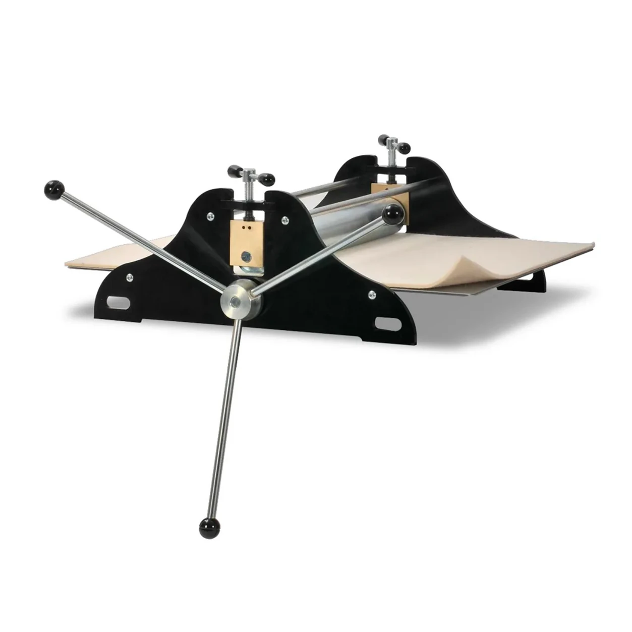 Napęd realizowany za pomocą trójramiennego koła o długości ramion 28 cm, zapewniającego płynne i równomierne prowadzenie matrycy.