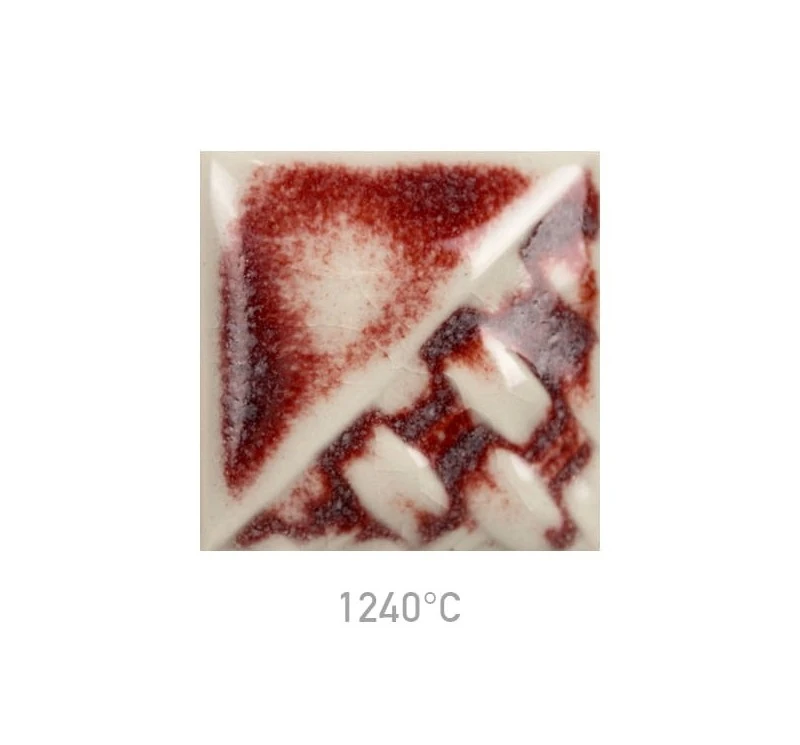 Szkliwo do kamionki MAYCO Stoneware SW-183 Oxblood to reaktywne szkliwo o wysokim połysku, charakteryzujące się jasną, mlecznobiałą bazą. Podczas wypału na jej powierzchni powstają nieregularne, czerwone kropki oraz smugi o zmiennym nasyceniu. Ostateczny wygląd powierzchni jest bezpośrednio uzależniony od grubości nałożonej warstwy: w miejscach cieńszej aplikacji dominuje półtransparentna biel, natomiast w zagłębieniach i przy grubszym nałożeniu koncentrują się intensywne, czerwone przebarwienia.