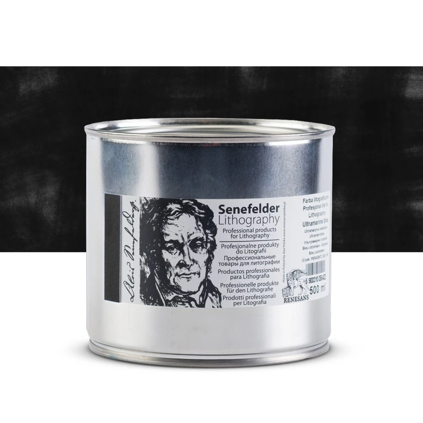 Senefelder - tusz litograficzny 500 ml do druku z kamienia na papier. Opracowany z optymalnie wysoką zawartością najwyższej jakości pigmentów, aby sprostać oczekiwaniom grafików odnośnie najwyższej jakości druków litograficznych.