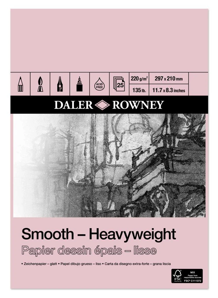 Daler Rowney Smooth Heavyweight Cart Pad A4 220g 25ark