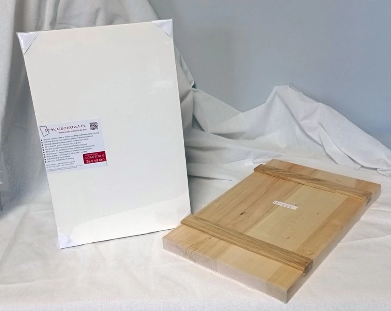 Deski do ikon wykonywane są ręcznie w Polsce, zgodnie z wielowiekową, średniowieczną tradycją. Do ich produkcji wykorzystuje się starannie wyselekcjonowane, rodzime drewno oraz najwyższej jakości bawełniane płótno, co zapewnia trwałość i doskonałe właściwości pracy.