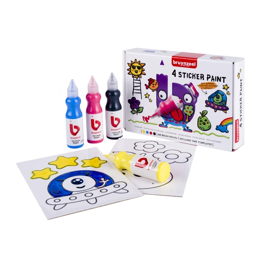 Pozwól wyobraźni swojego dziecka rozbłysnąć dzięki zestawowi farb samoprzylepnych Bruynzeel! Ten wszechstronny zestaw kreatywny zawiera cztery żywe, mieszalne kolory (żółty, czerwony, niebieski, czarny) oraz dwa atrakcyjne szablony na początek. Dzięki łatwej w użyciu dyszy dzieci mogą rysować bezpośrednio na plastikowych arkuszach – bez użycia pędzli! Po wyschnięciu błyszczące dzieła można odkleić i przykleić na okna, lustra, wazony, słoiki, piórniki i wiele innych przedmiotów. Zestaw nie brudzi, jest prosty w użyciu i idealnie nadaje się na urodziny, święta lub deszczowe popołudnia. Wystarczy wycisnąć, wysuszyć i przykleić – gwarantowana niekończąca się zabawa!