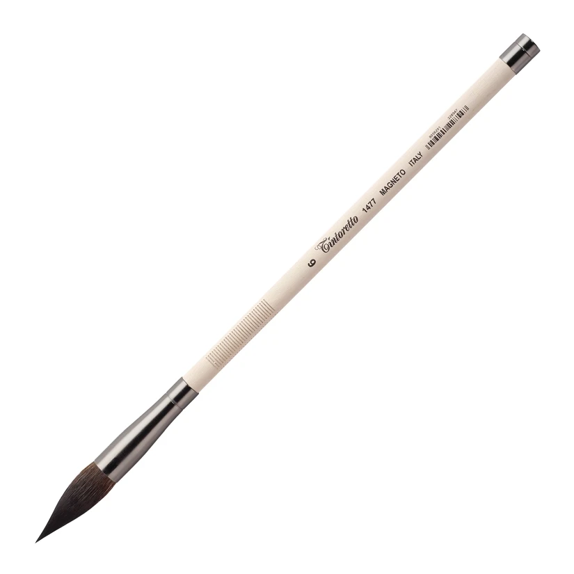 Seria 1477: To profesjonalny pędzel akwarelowy z innowacyjnym systemem magnetycznym i wodoodpornym, idealnie wyważonym trzonkiem Pędzel powstał na bazie tradycyjnych azjatyckich pędzli do kaligrafii i akwareli oraz popularnej serii 1407 Tintoretto, wprowadzając nowoczesne udoskonalenia Zamiast klasycznego sznureczka do zawieszania, Magneto posiada silny magnes na końcu trzonka, który umożliwia łatwe mocowanie pędzla do dowolnej metalowej powierzchni, chroniąc włosie i zachowując jego kształt.