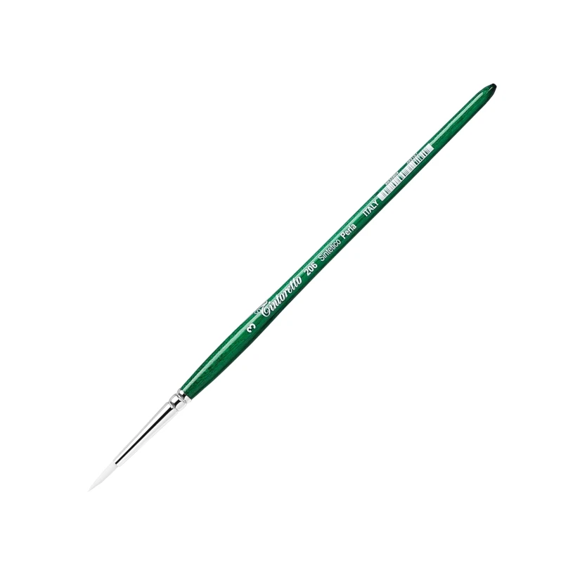 Seria 206: Wykonane z najbielszych włókien syntetycznych, są to najbardziej ekonomiczne pędzle w ofercie Tintoretto. Idealne zarówno do użytku szkolnego, jak i amatorskiego, zapewniają doskonałą przyczepność farby i utrzymanie końcówki, zwłaszcza w przypadku farb płynnych i o średniej gęstości. Czasami są również cenione w zaawansowanych technikach akwarelowych.