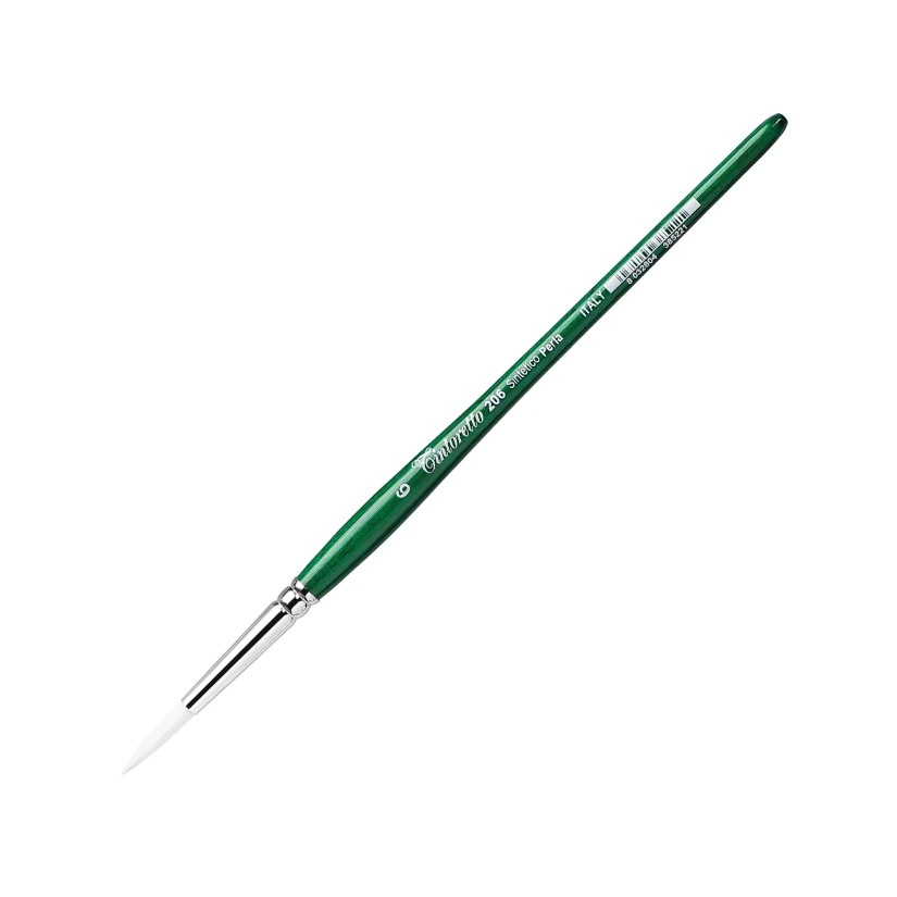 Seria 206: Wykonane z najbielszych włókien syntetycznych, są to najbardziej ekonomiczne pędzle w ofercie Tintoretto. Idealne zarówno do użytku szkolnego, jak i amatorskiego, zapewniają doskonałą przyczepność farby i utrzymanie końcówki, zwłaszcza w przypadku farb płynnych i o średniej gęstości. Czasami są również cenione w zaawansowanych technikach akwarelowych.
