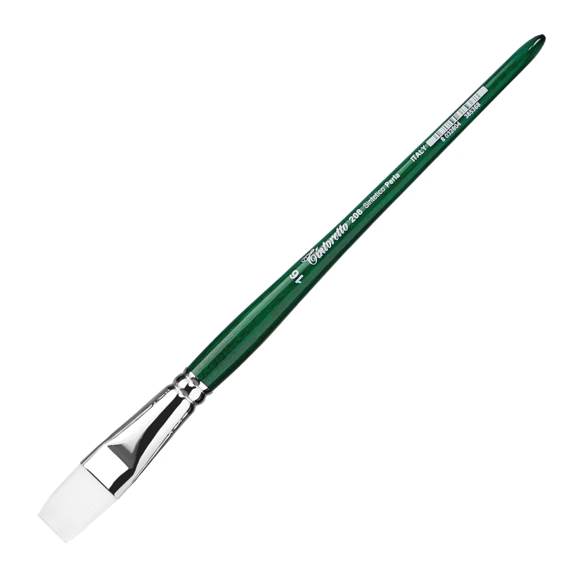 Seria 208: Wykonane z najbielszych włókien syntetycznych, są to najbardziej ekonomiczne pędzle w ofercie Tintoretto. Idealne zarówno do użytku szkolnego, jak i amatorskiego, zapewniają doskonałą przyczepność farby i utrzymanie końcówki, zwłaszcza w przypadku farb płynnych i o średniej gęstości. Czasami są również cenione w zaawansowanych technikach akwarelowych.
