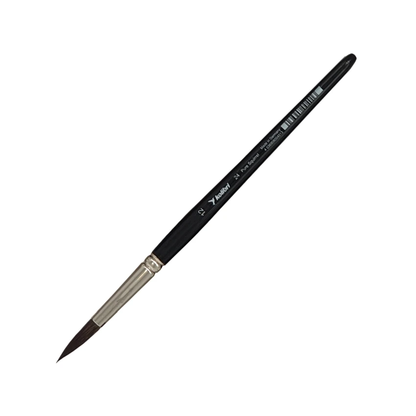 Pędzle do akwareli z okrągłą końcówką, z czystego naturalnego włosia wiewiórki, bezszwowe niklowe skuwki, krótkie, błyszczące, czarne, lakierowane drewniane rączki