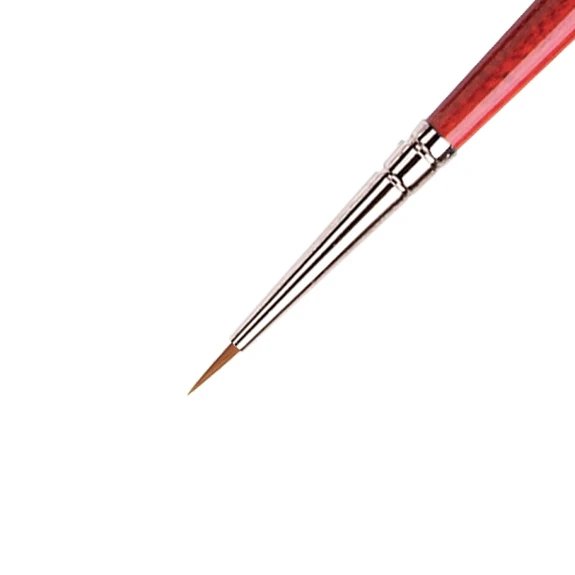 Najdelikatniejsze, wyjątkowo gładkie, jasnobrązowe włókna syntetyczne tzw. srebrna skuwka krótkie, czerwone, lakierowane, sześciokątne uchwyty do malowania akwarelami i na jedwabiu idealne do malowania akwarelami i wodą, a także do rysowania drobnych szczegółów miękkie i elastyczne włókna syntetyczne o szczególnie wysokiej absorpcji koloru.