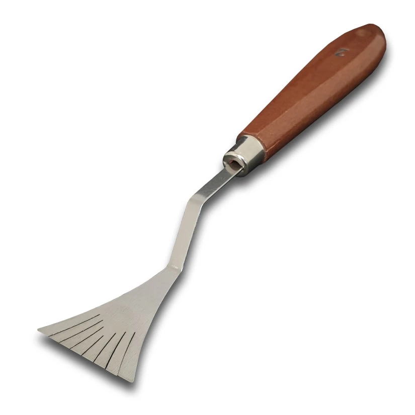 Szpachelka artystyczna przeznaczona do pracy z farbami olejnymi i akrylowymi, pastami strukturalnymi, masami modelarskimi oraz gipsem. Specjalnie wyprofilowane metalowe ostrze umożliwia tworzenie różnorodnych faktur, nakładanie i modelowanie materiału oraz pracę nad detalami. Ergonomiczna drewniana rączka zapewnia wygodny i stabilny chwyt podczas pracy.
