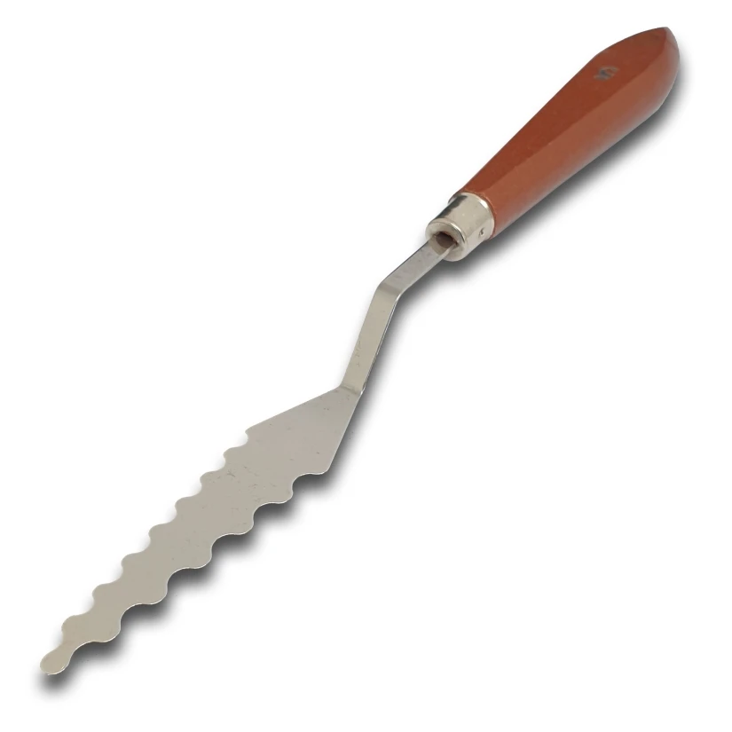 Szpachelka artystyczna przeznaczona do pracy z farbami olejnymi i akrylowymi, pastami strukturalnymi, masami modelarskimi oraz gipsem. Specjalnie wyprofilowane metalowe ostrze umożliwia tworzenie różnorodnych faktur, nakładanie i modelowanie materiału oraz pracę nad detalami. Ergonomiczna drewniana rączka zapewnia wygodny i stabilny chwyt podczas pracy.