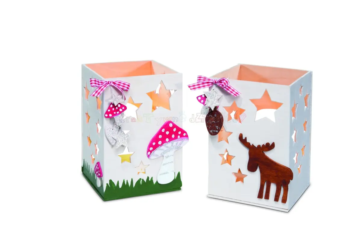 Zestaw umożliwia skonstruowanie małego świecznika. Elementy konstrukcyjne są już wstępnie wycięte - dziecko ma za zadanie je tylko odpowiednio połączyć i pomalować.
