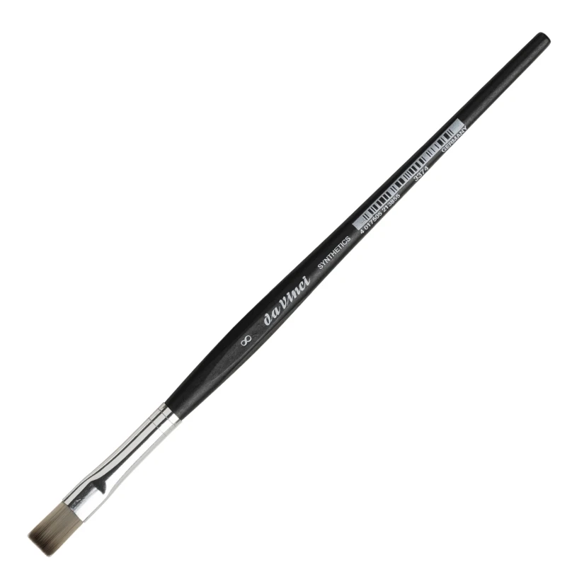Te uniwersalne pędzle artystyczne z serii da Vinci 3374 zostały wykonane z wysokiej jakości, elastycznego szarego włókna syntetycznego, które zapewnia bardzo dobrą sprężystość i odporność na zużycie. Dzięki temu pędzle doskonale sprawdzają się zarówno w technikach suchych, jak i mokrych – takich jak akryl, olej, gwasz czy tempera.
